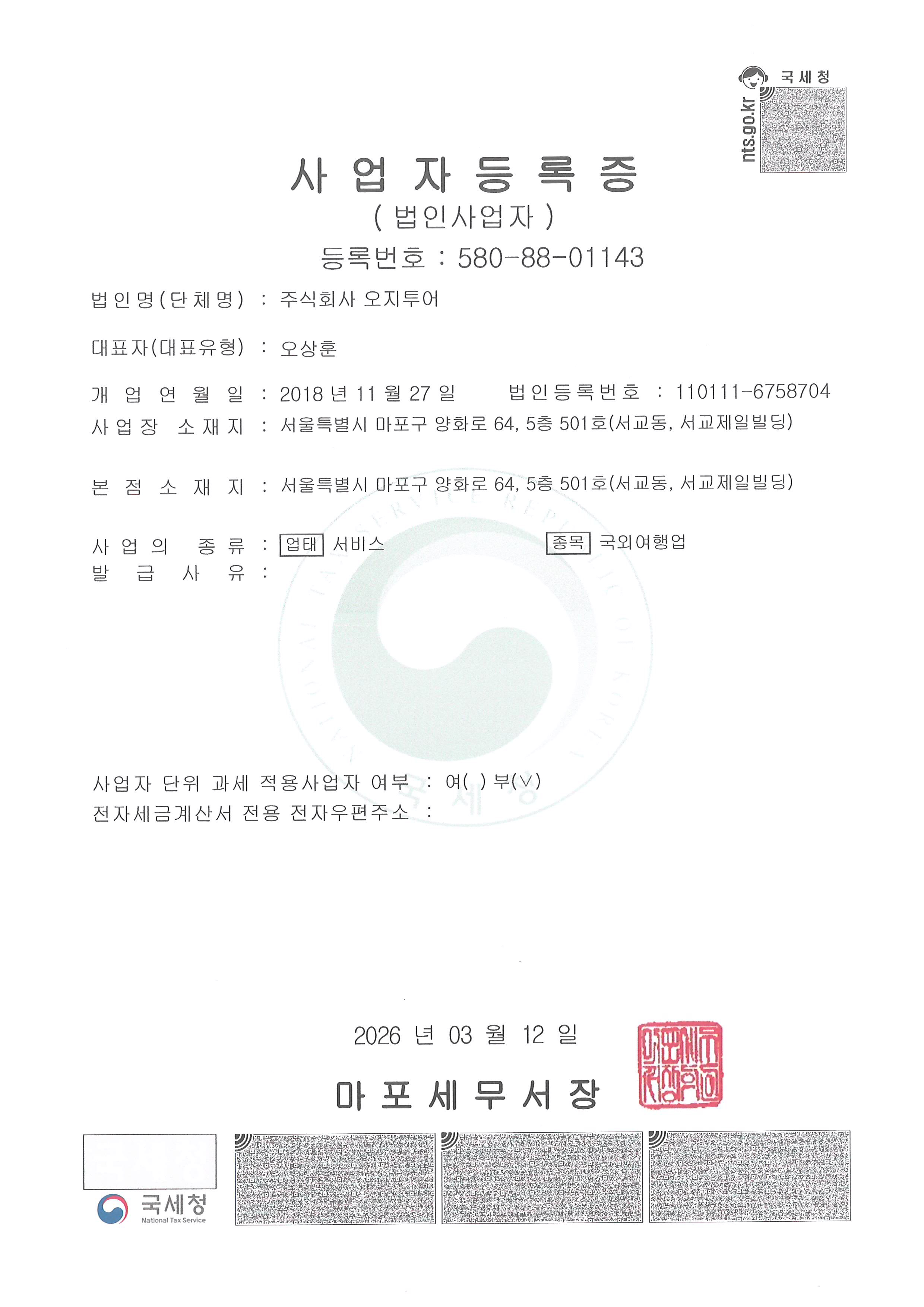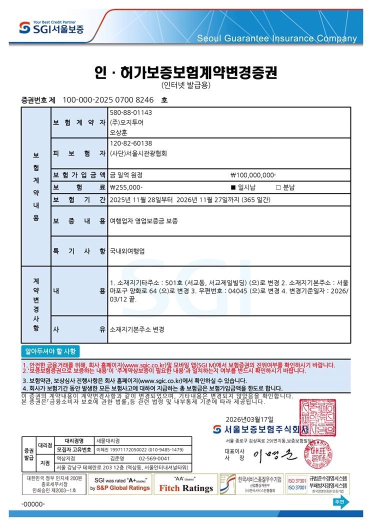 (주)오지투어 본사 사무실 이전 안내