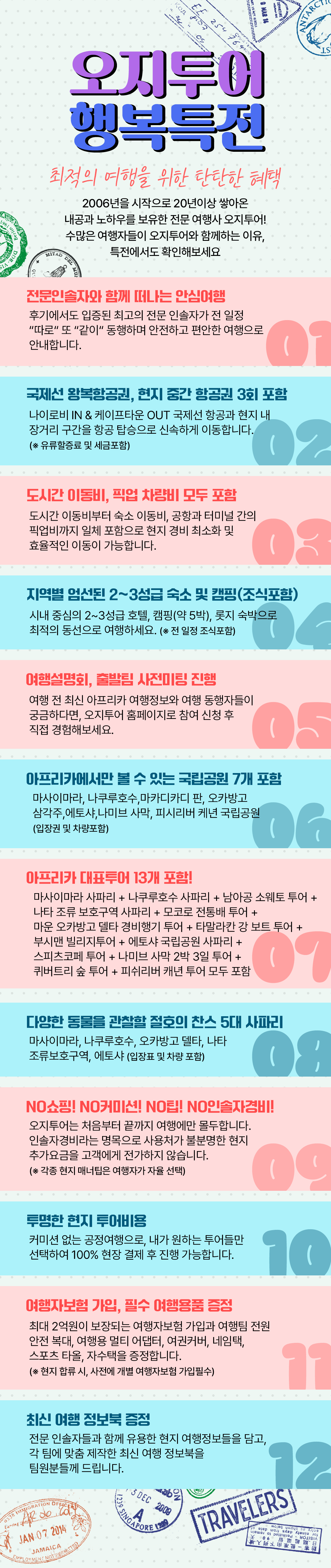 - ㈜오지투어 홈페이지에 기재된 항공편, 항공 시간 등은 항공사 및 현지 사정에 따라 통보 없이 변경될 수 있습니다.