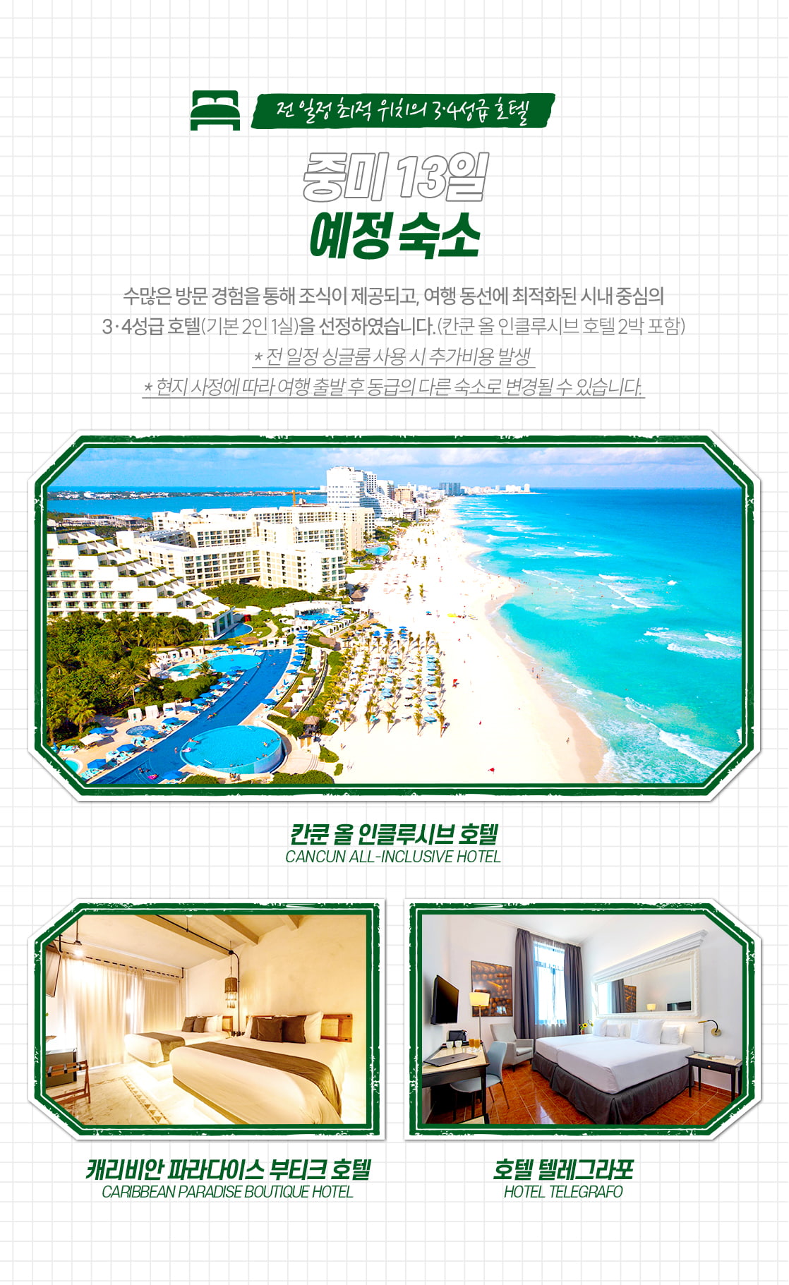 - 중미 내 중간구간 항공은 발권 후, 환불 불가합니다.