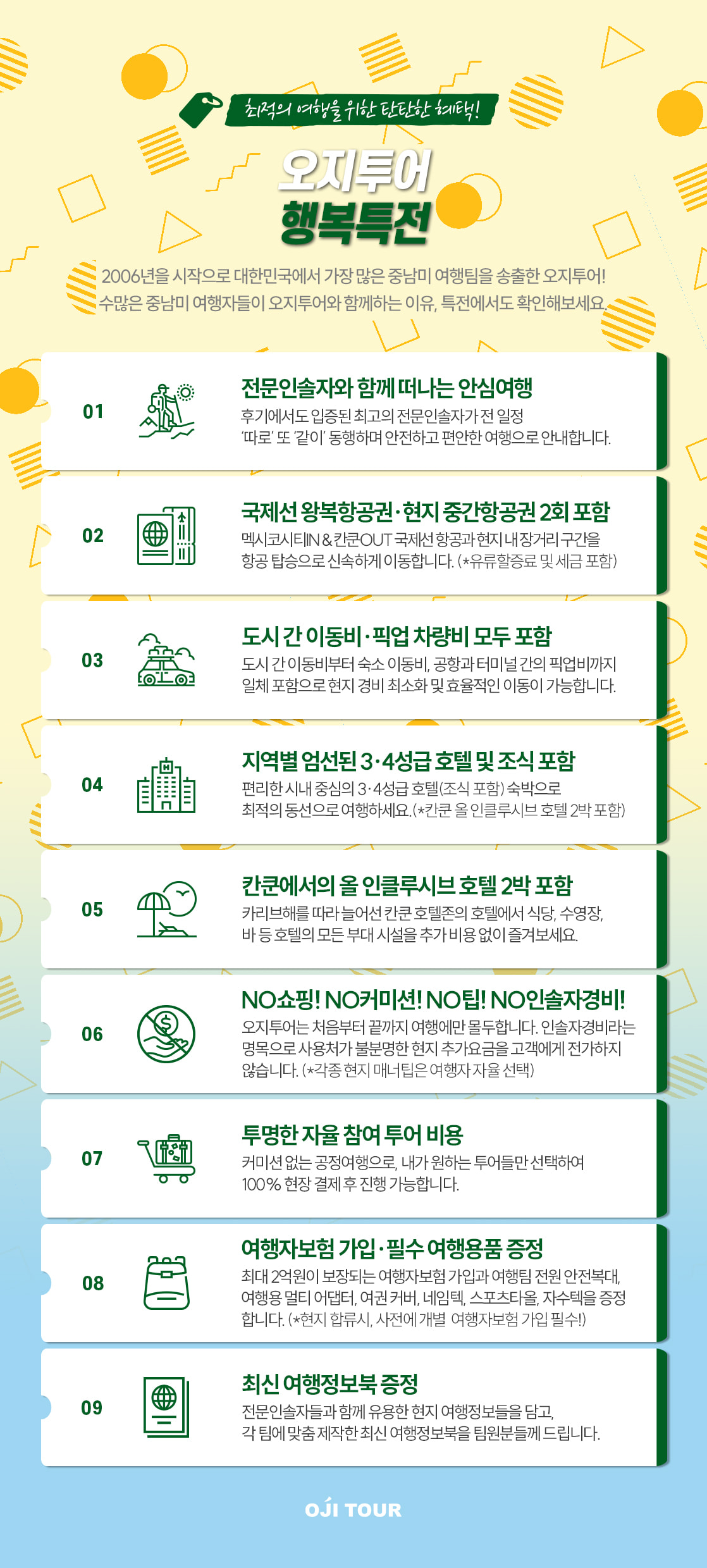 - 마일리지 적립 여부 및 누락에 대한 책임은 여행자 본인에게 있으며, 오지투어에서는 이를 보장하거나 대행해 드리지 않습니다.