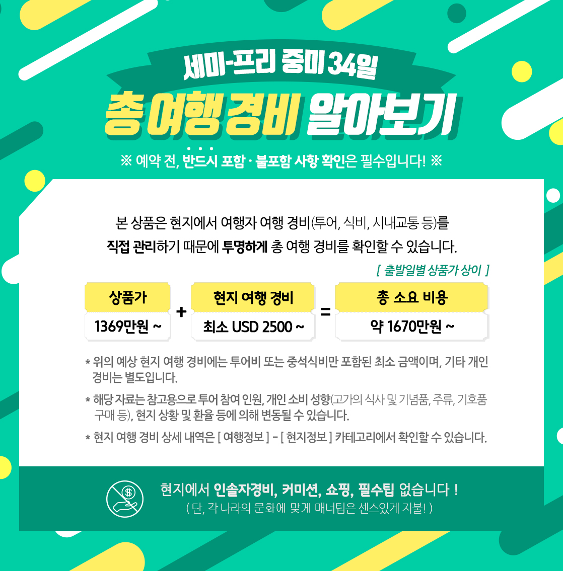 ◆ 출발 전 안내해 드리는 현지 여행 경비는 최저 예상 비용이며, 현지 물가 인상 및 개인의 소비 형태에 따라 상이해질 수 있음을 인지하시기 바랍니다.
